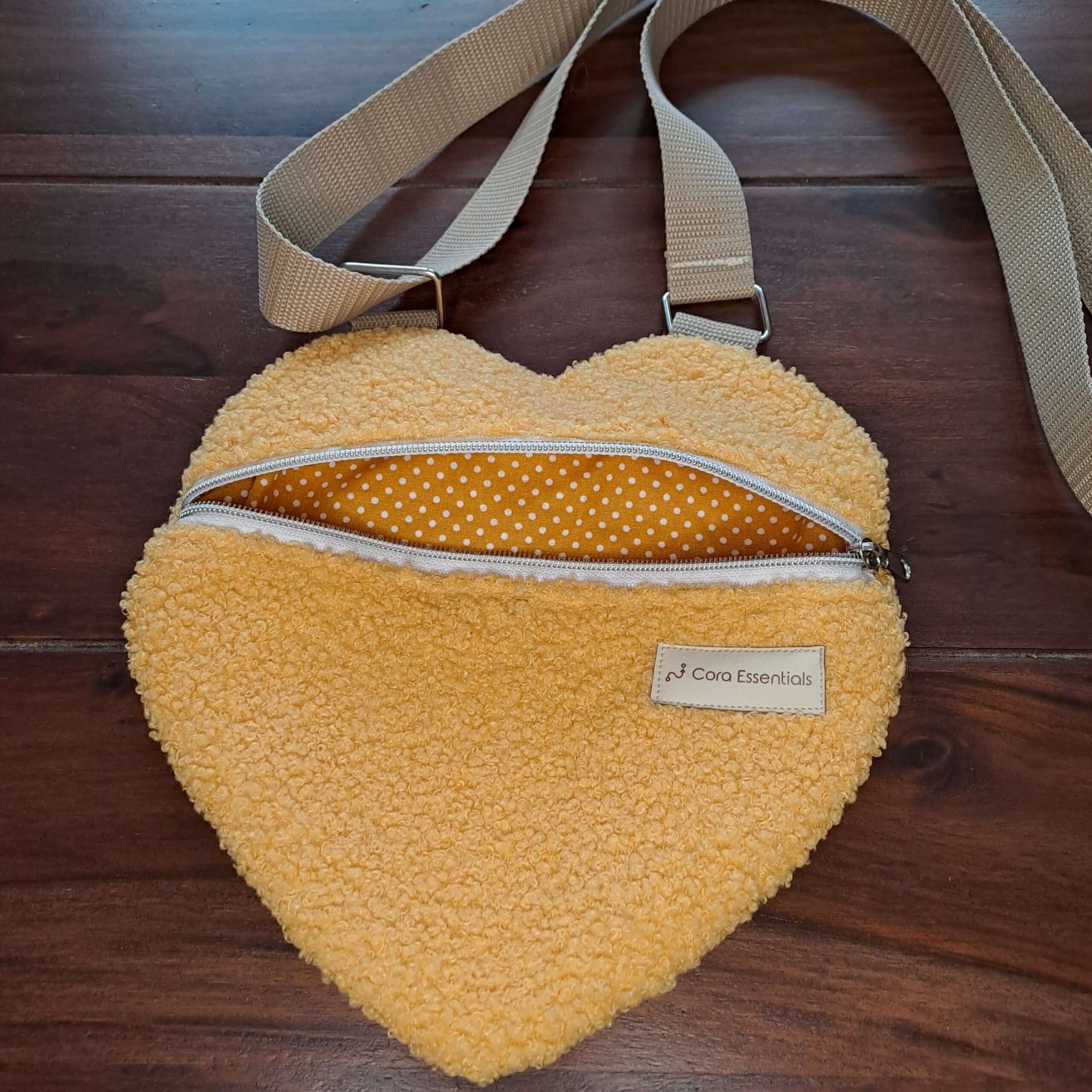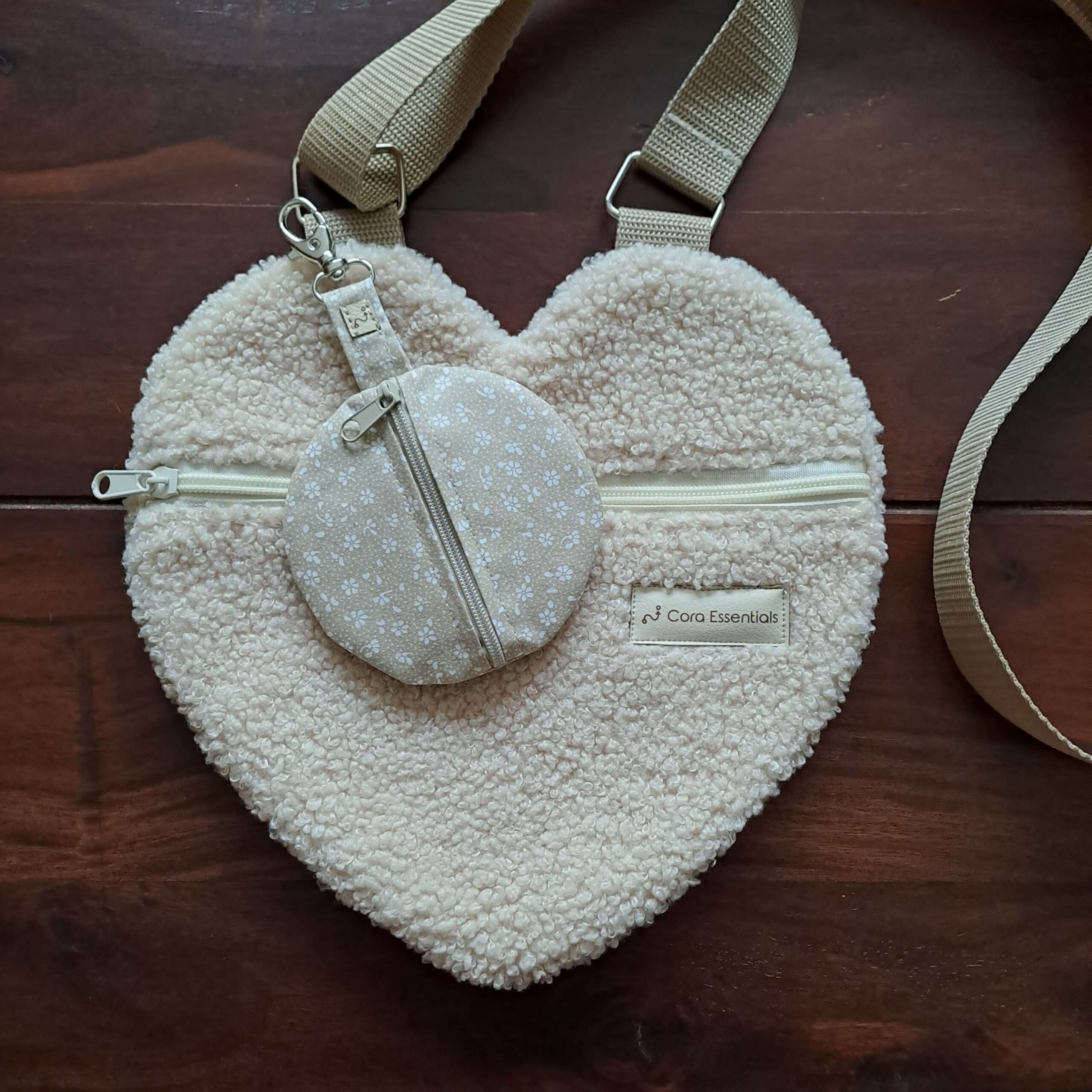 Ez a pihe-puha szív alakú teddy válltáska azokra a napokra készült, amikor a legfontosabb a pillanat, és nem a táska mérete. Csak kulcs, telefon, kártyatartó, rúzs és zsepi – kész. Nem kell több dolgot cipelni ahhoz, hogy hatalmas élményeket gyűjts.